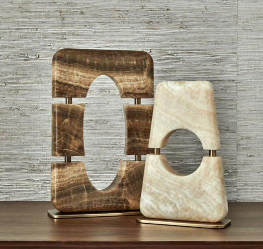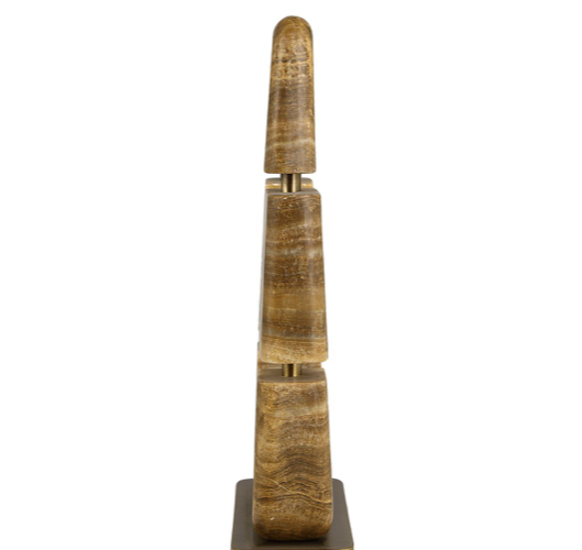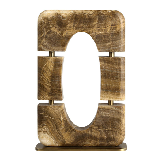Latte onyx linked by brass are joined to create a unique sculpture that stands on a brass finished steel base.