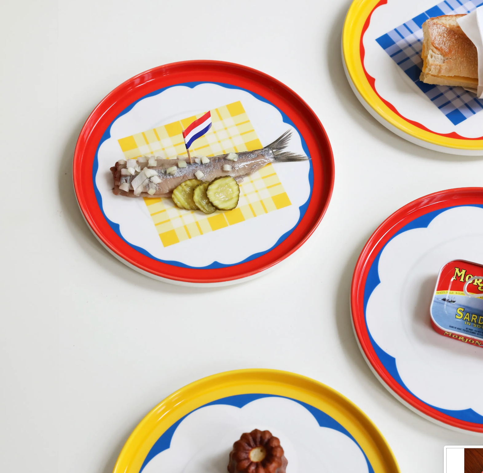 The Plate daydream, designed by Nynke Tynagel for our sub-label Buro Berger, was inspired by nostalgic plates and paper napkins that Nynke envisioned while daydreaming. These contemporary plates use graphic shapes and silhouettes to create visual illusions that captivate the eye. This colourful set of dinner plates blends old-fashioned charm with modern design through optical illusion.