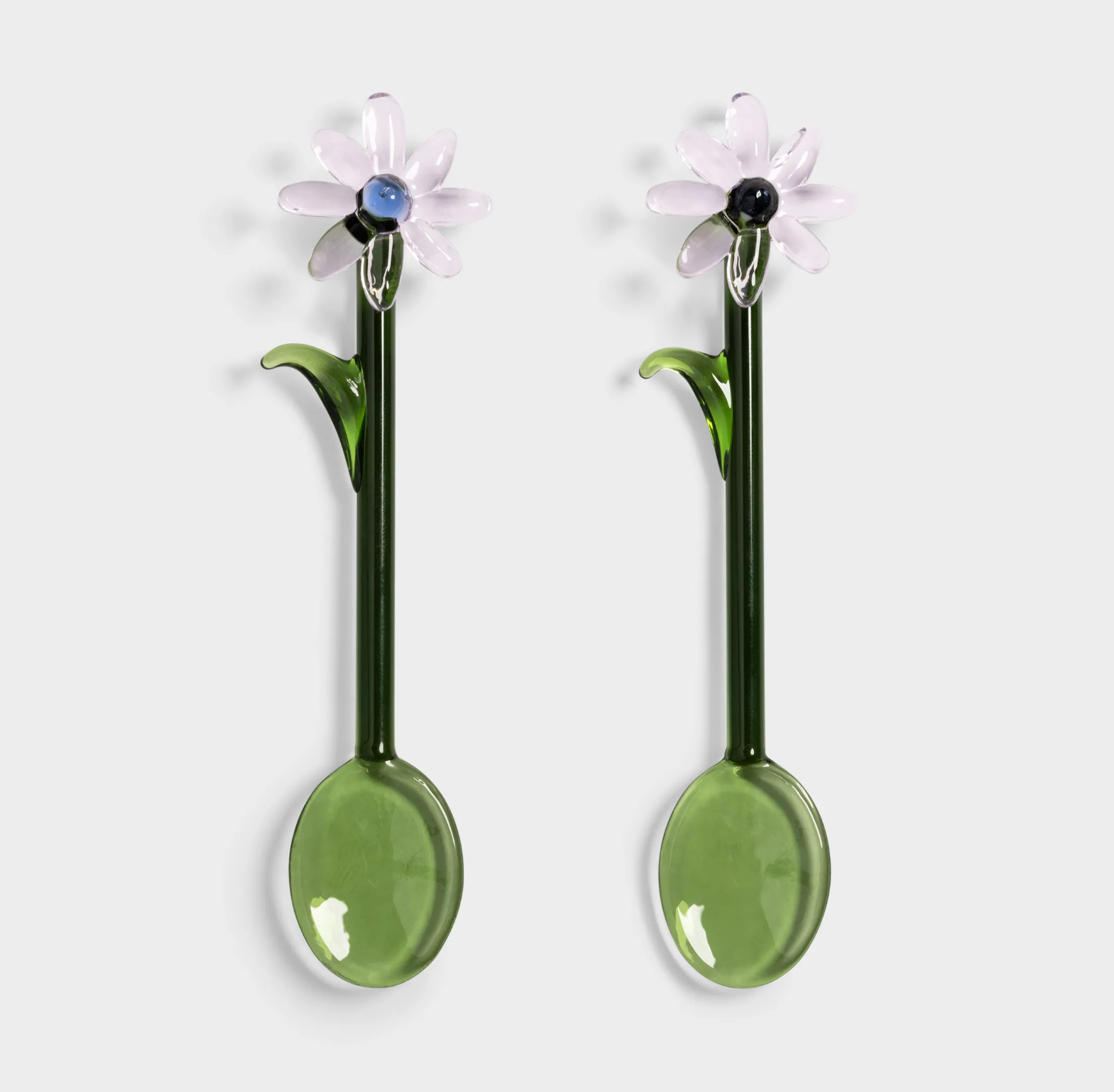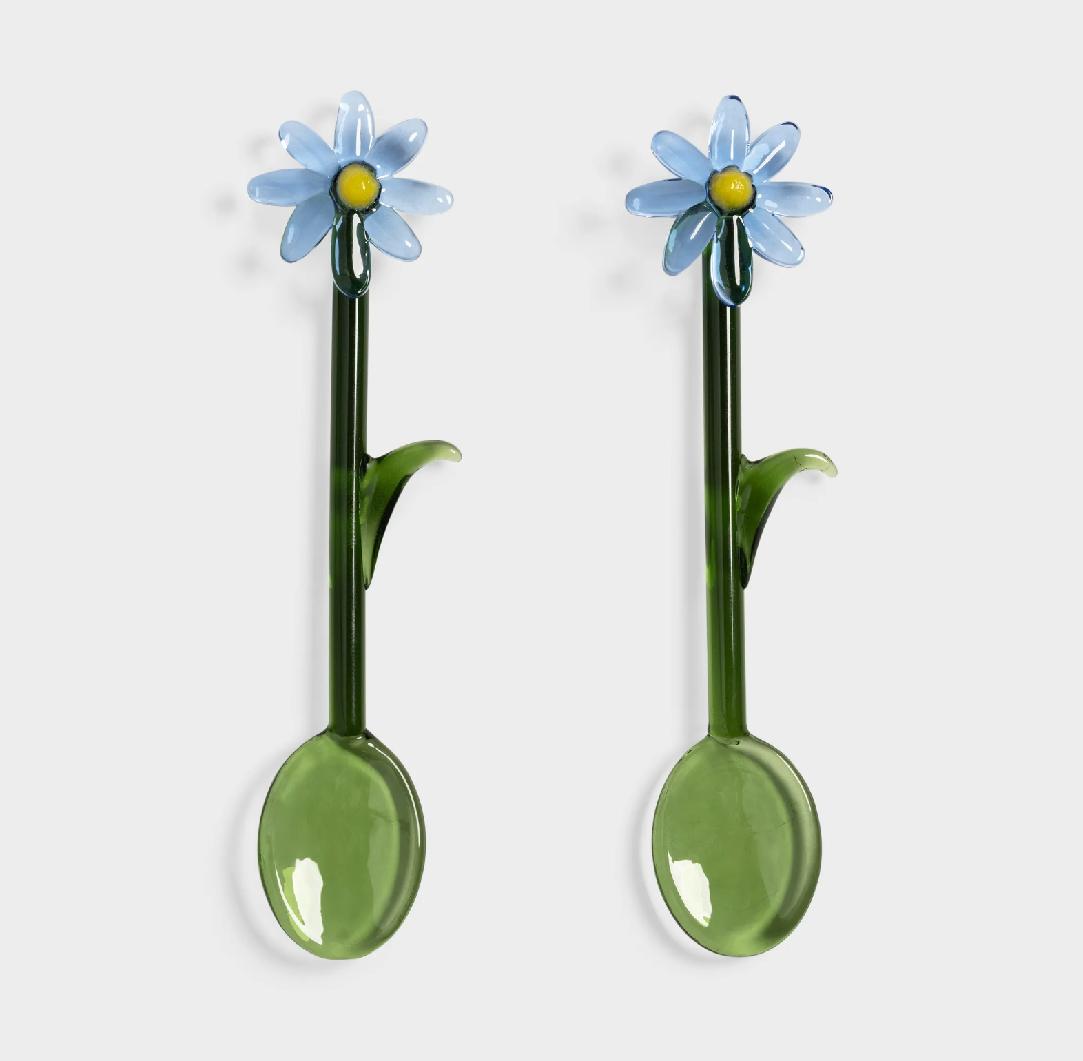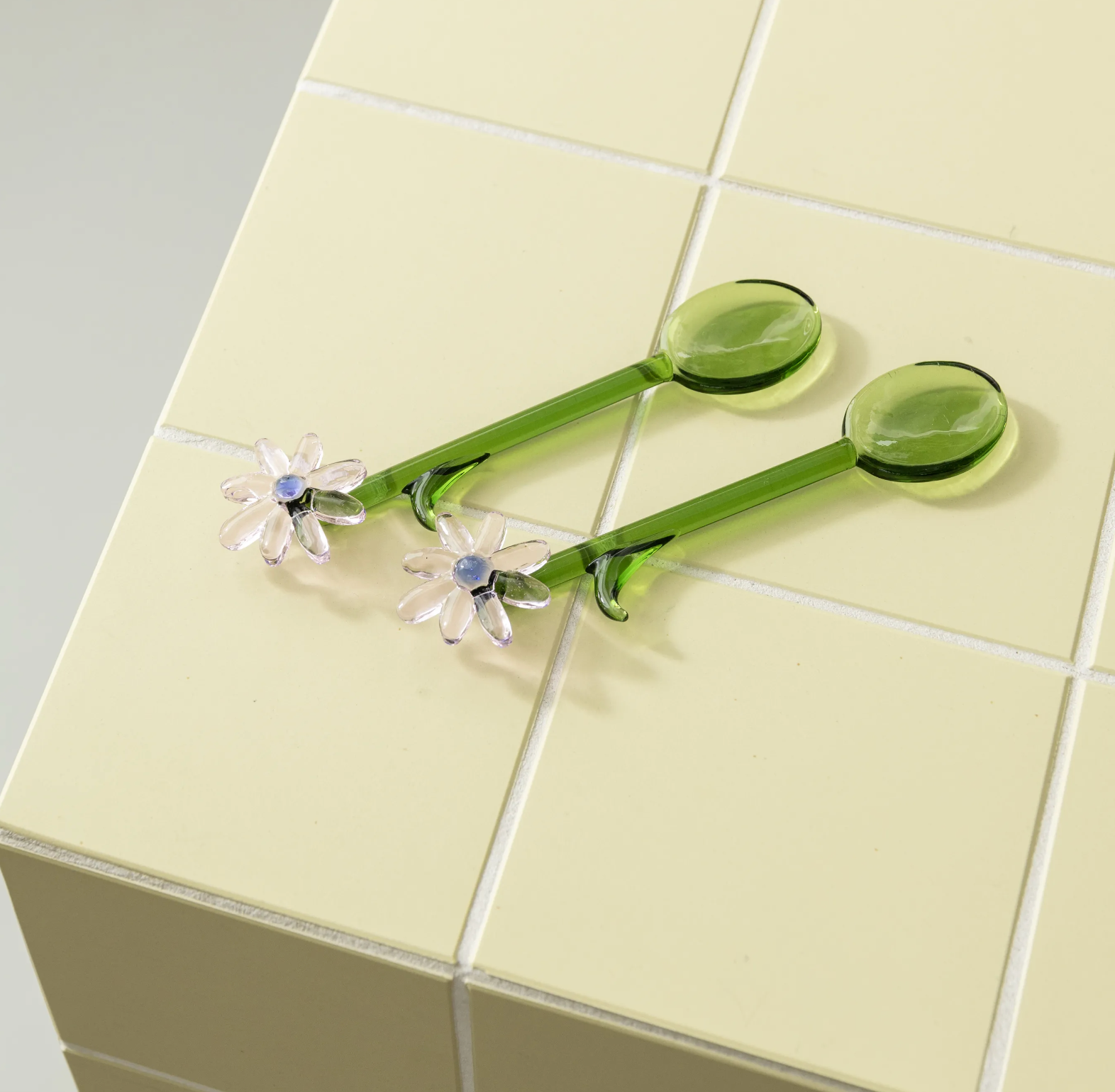 The Flora spoon set is crafted from borosilicate glass, designed to pair perfectly with the Flora water glasses. Featuring hand-placed flowers and leaves, each set of two spoons is one-of-a-kind, adding a unique, handmade charm to any table. Wrapped in a gift box, this set is ideal for summer gatherings or as a thoughtful gift to brighten someone's day.