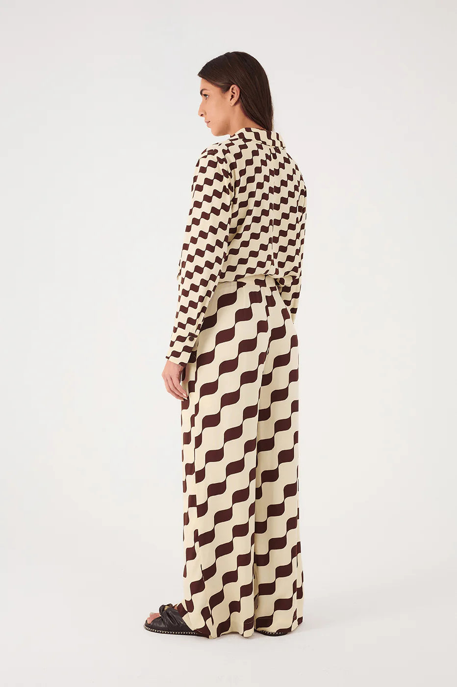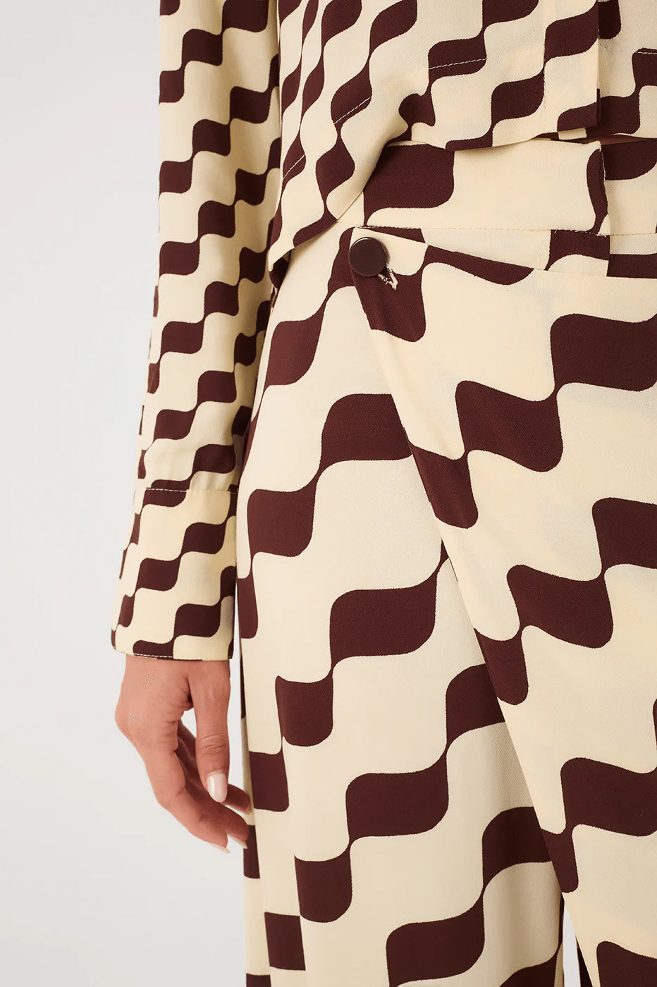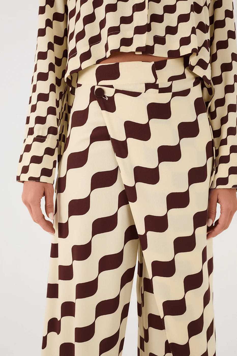 Bet in more modernity and style for your days. The Brown Bossa Nova Crepe Wrap Pants are made of crepe, have a loose fit, high waist, and super charming layering. Invest in the Bossa Nova crepe shirt and have a complete, super stylish look.