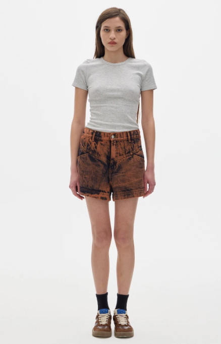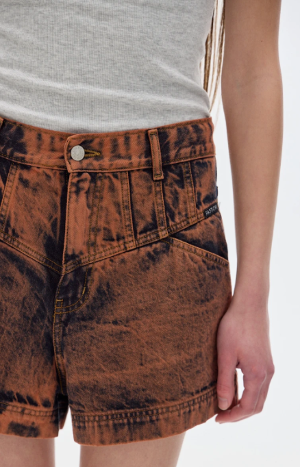 Short de denim, tiro medio-alto. Lavado washed. 100% algodón