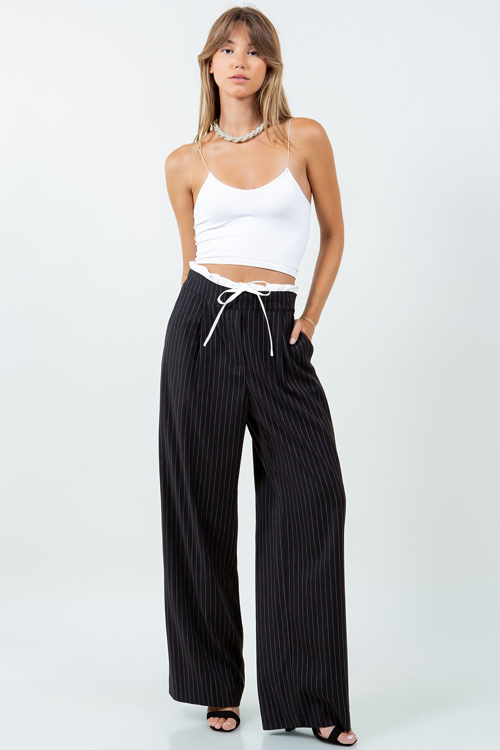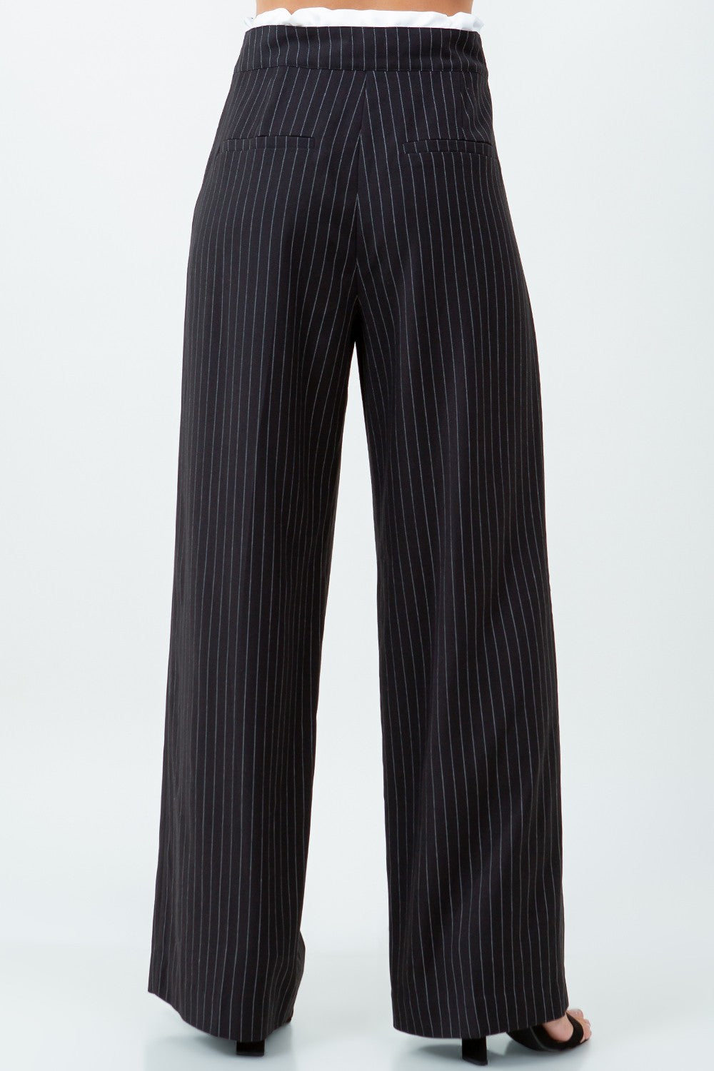 CONTRAST DOUBLE WAIST PINSTRIPE TROUSERS 68% POLYESTER 30% RAYON 2% SPANDEX