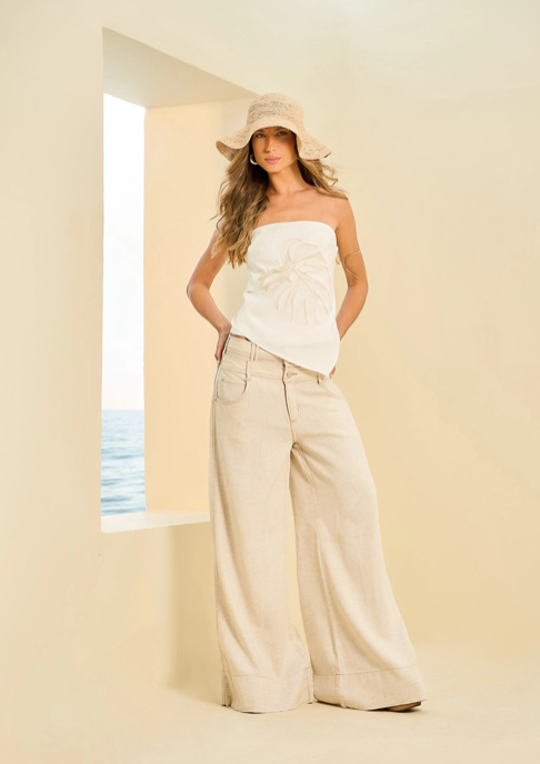 Women's Embroidered Linen Blouse BODY 80% VISCOSE 20%, LINHO LINING 100% VISCOSE