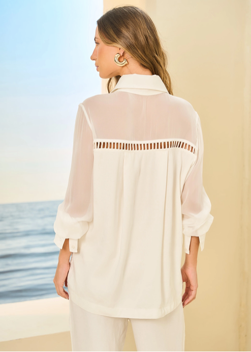 MATERIAL: BODY 80% VISCOSE 20% LINEN FRONT DETAIL 100% COTTON SLEEVES AND YOKES 100%