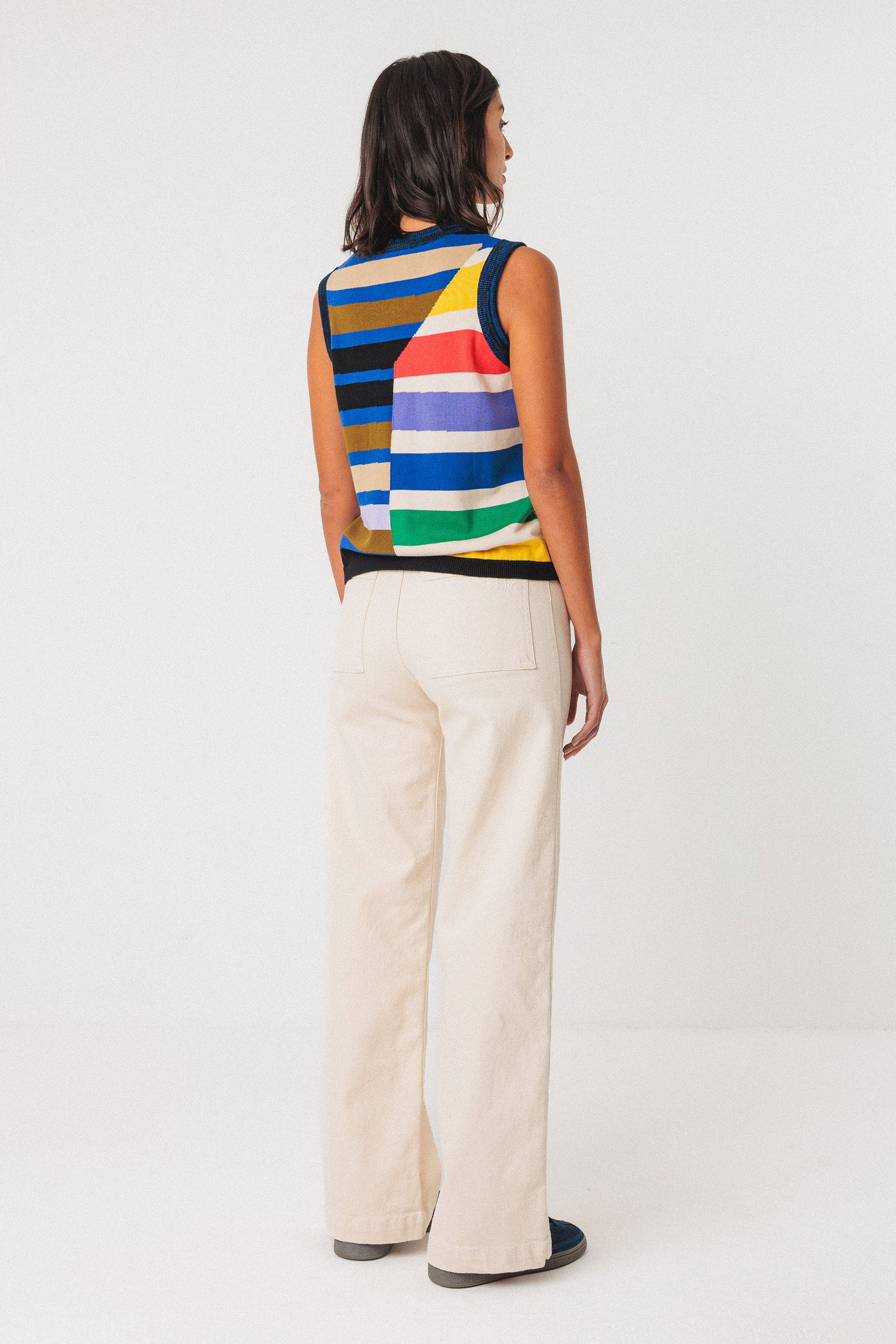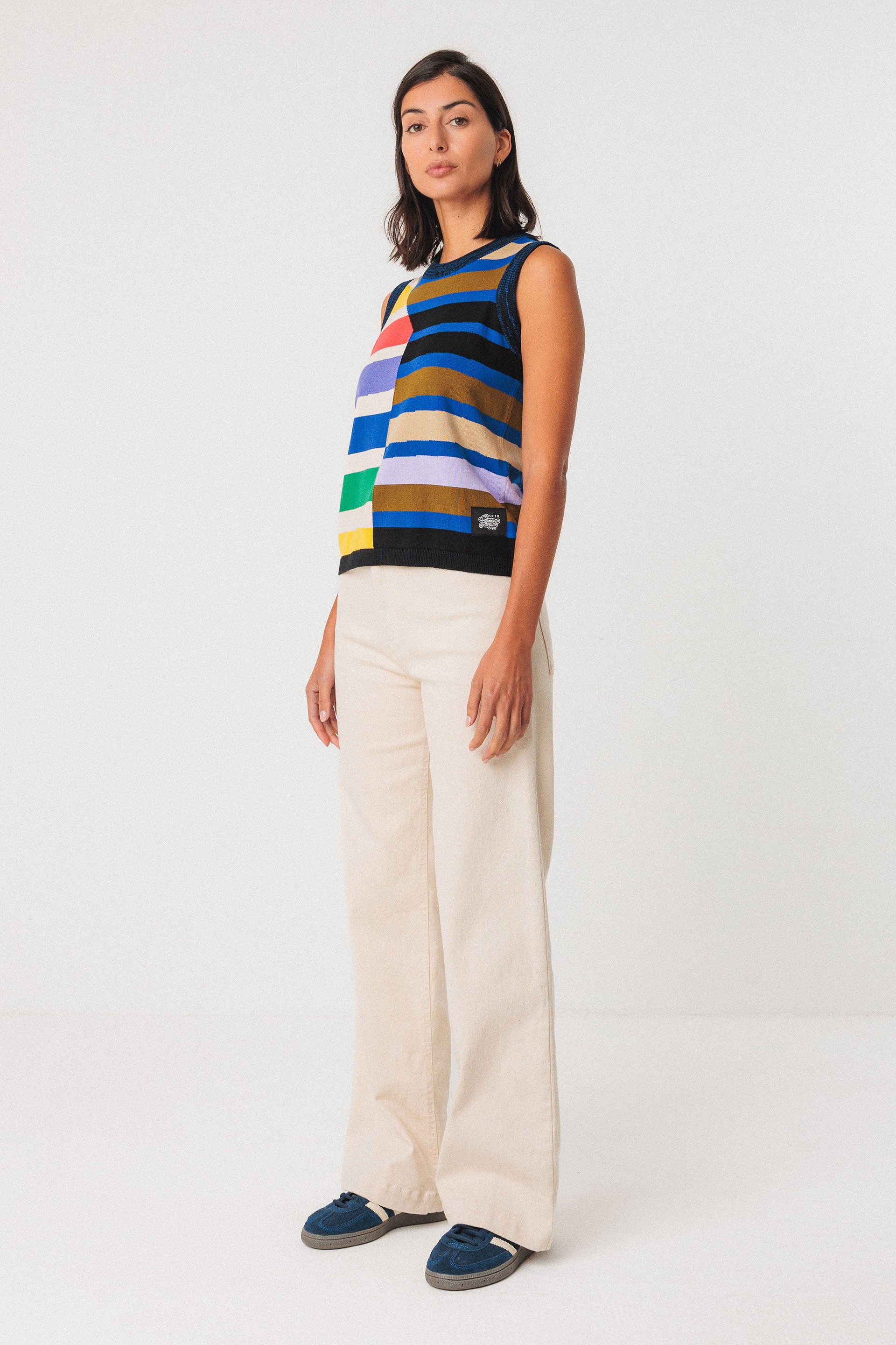 Sleeveless jacquard knit top with a design created in collaboration with artist Grems. Round neck and slim fit.